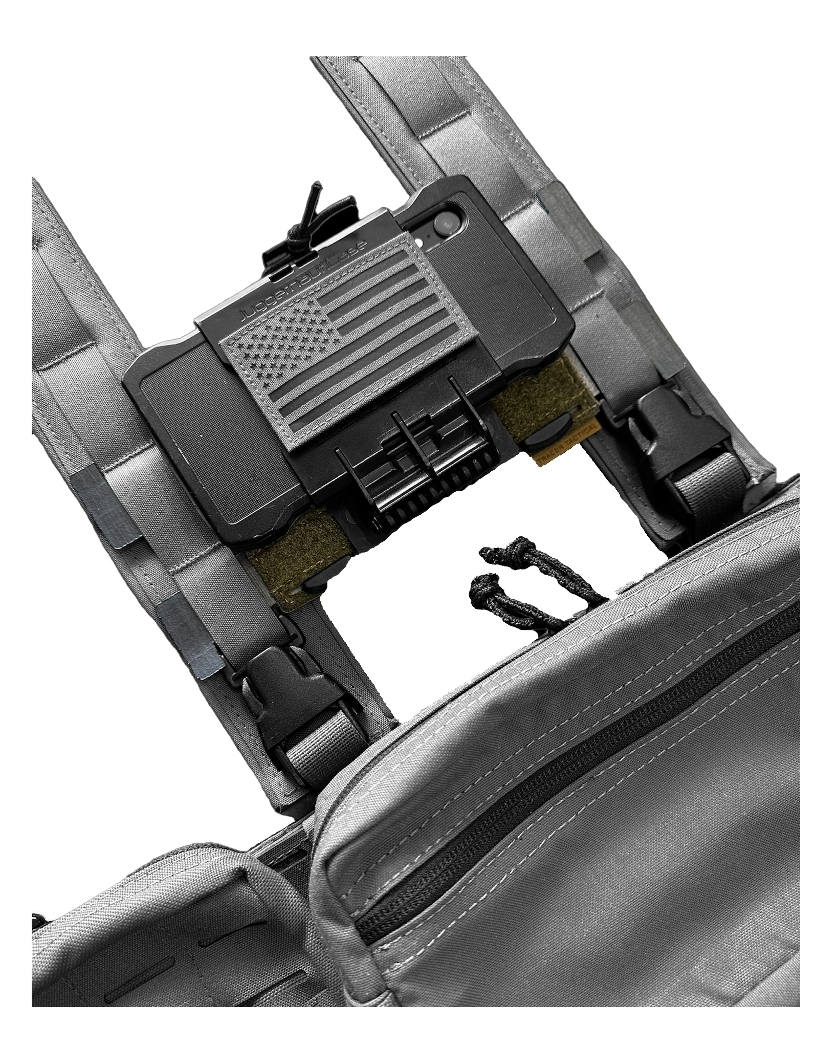 *DISCLAIMER - the vertical webbing on our H-Harness is tacked down at different intervals to allow PTT alligator clips to mount easier. It does not follow traditional MOLLE spacing and so this display Mount may not fit well on other harnesses.