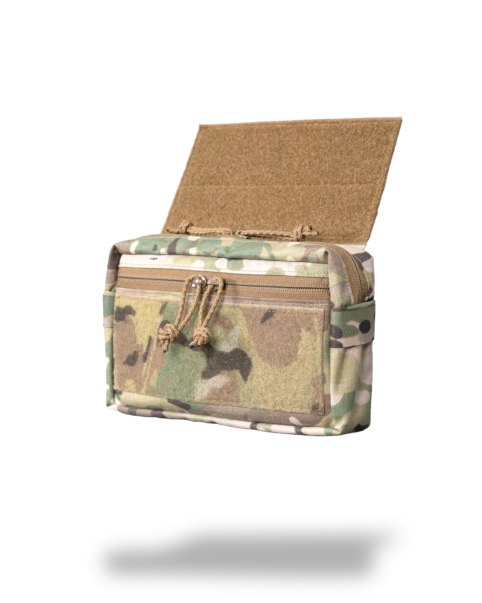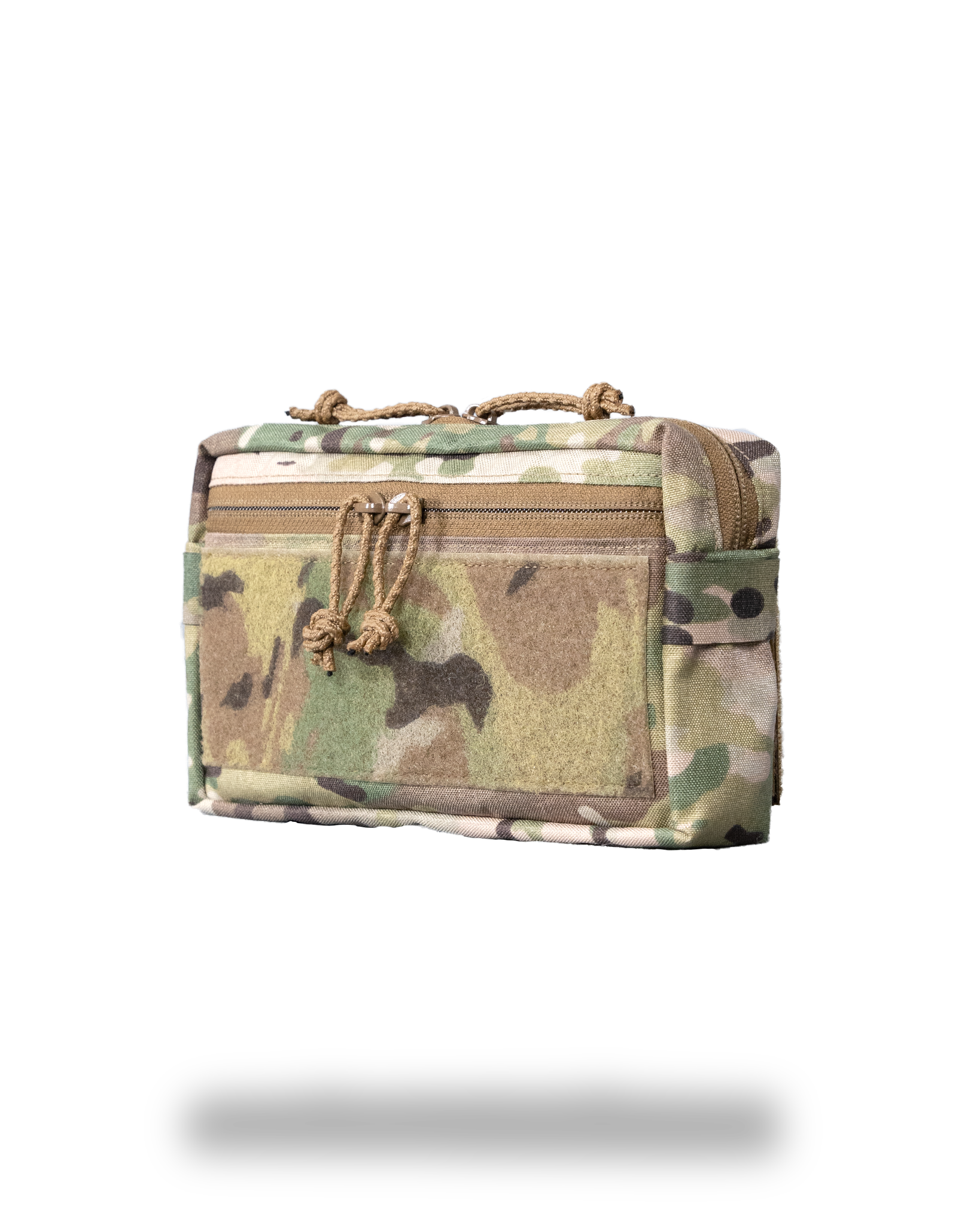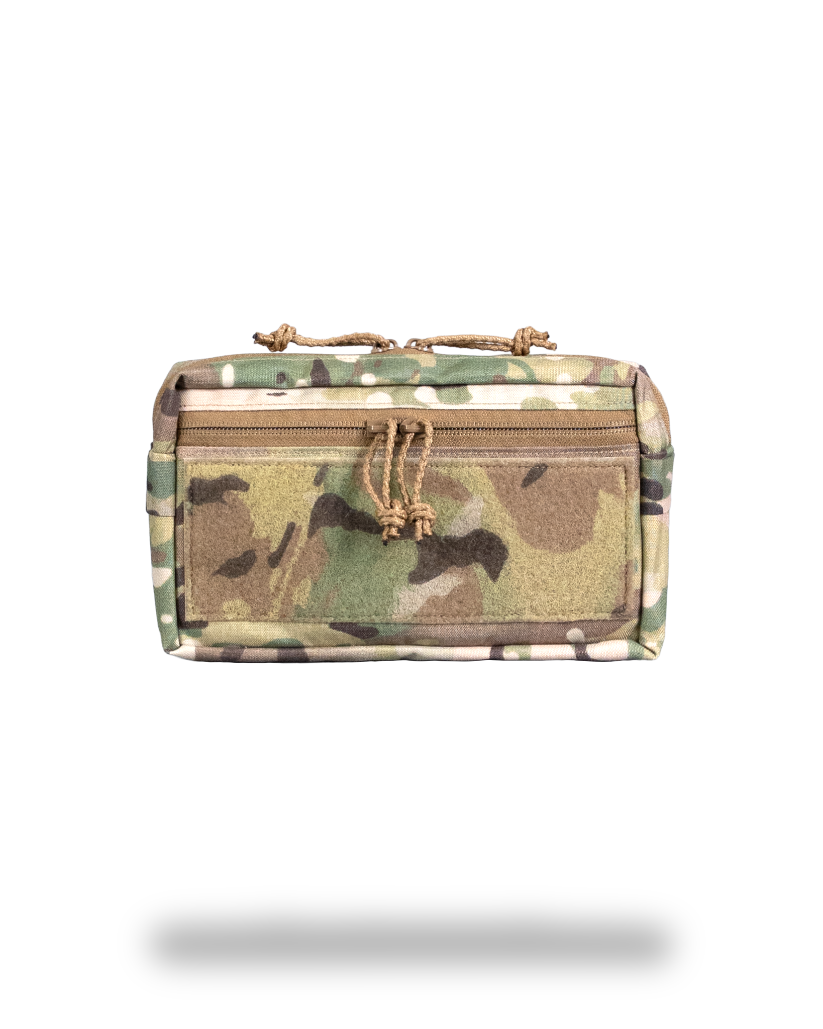 The DUFF is a Multi-Functional pouch. It’s a dangler sack, it’s a utility pouch, it’s a Fanny pack, it’s a rig Flap. Velcro loop inside allows for magazine inserts and other accessories to be anchored in. Row of 1” MOLLE webbing on bottom. Posi-lock cord zipper pulls. Loop Velcro on front.