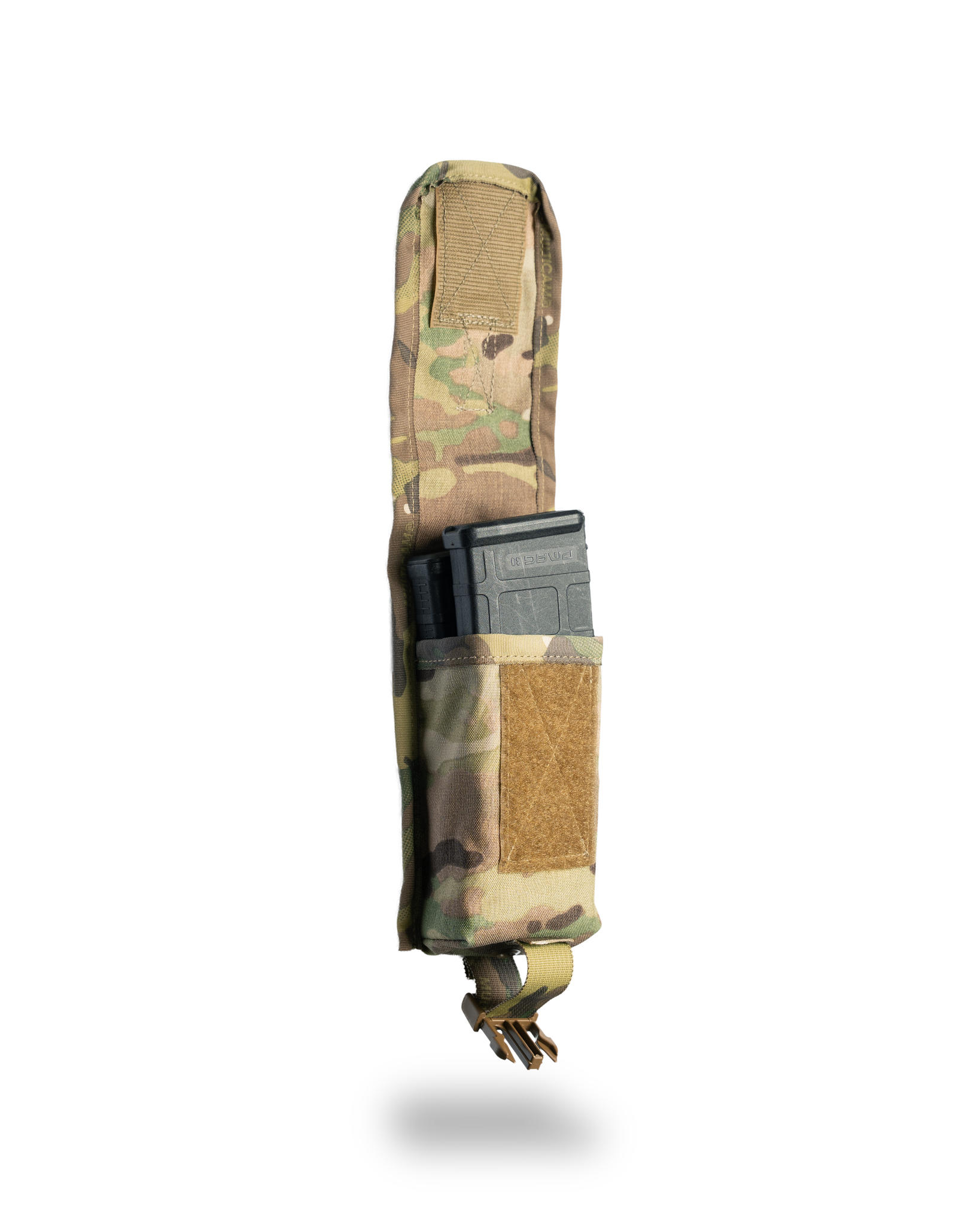 “They don’t make em’ like they used to…” A combat-proven design. This method of construction is tried and true. A pouch that has the nostalgia of the late 90’s / early 2000’s with a modern twist. Binded, double-layer 500D MOLLE pouch, Velcro and buckle closure for jump operations, this pouch will hold two 5.56 magazines, or one 7.62/.308 magazine, one M18 Smoke Grenade, a 4x6” Rite in the Rain Notebook and pencils/pens, and many other items. Mini MOLLE on the back with built-in tails, and a grommet for drainage.