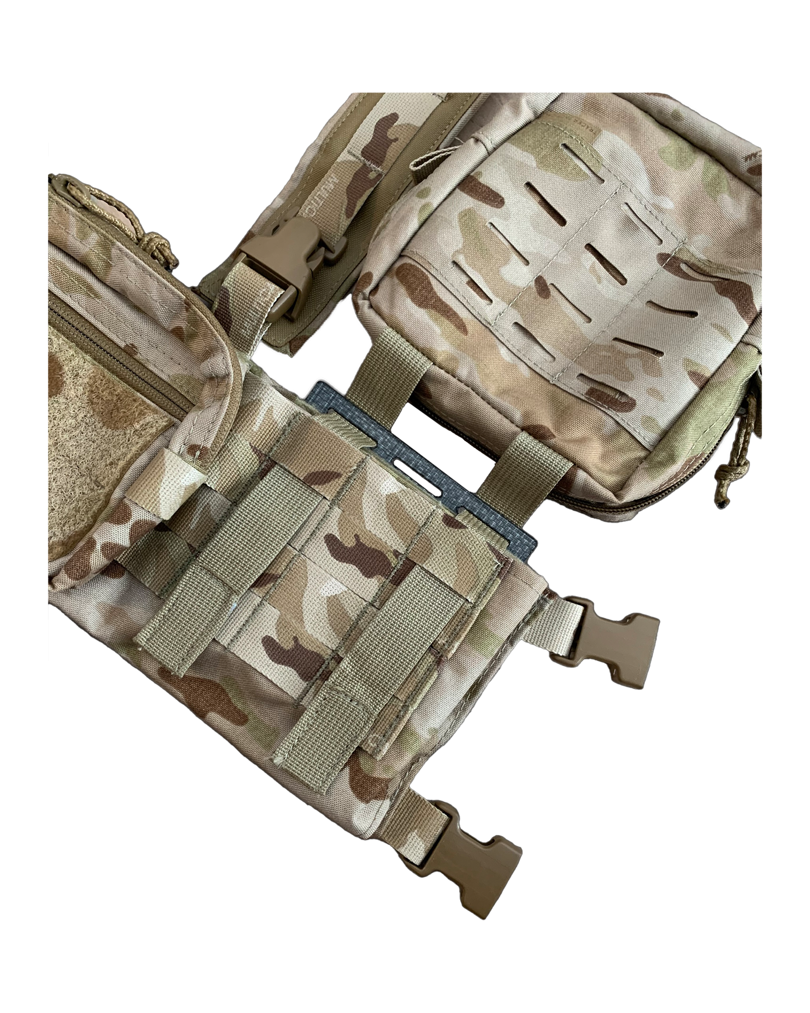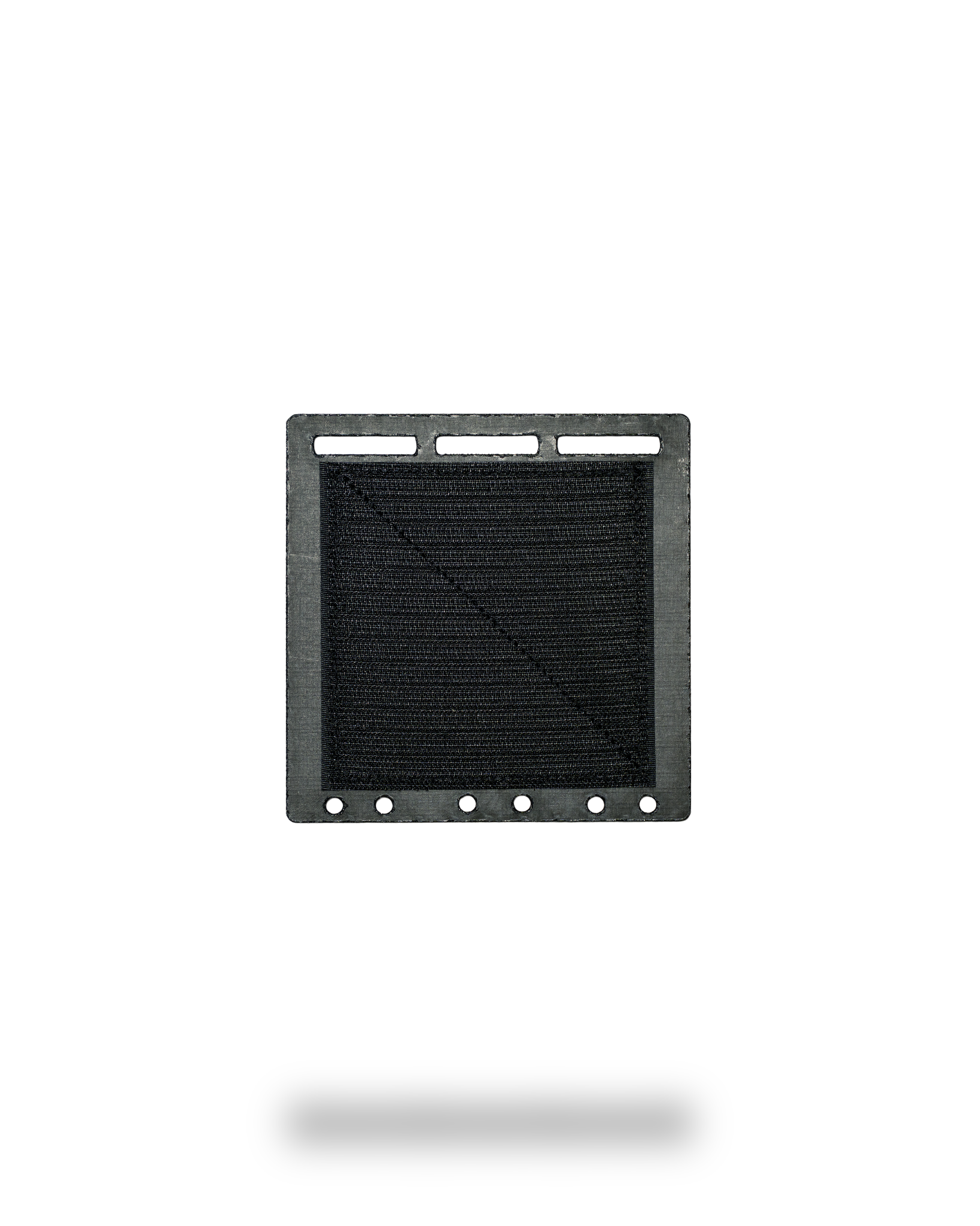 5” x 5” piece of Thermoplastic with double-sided hook for use in the front or rear sides of the SCOUT rigs. 1” webbing slots on one side and holes for a retention option if not running a heavy pouch.