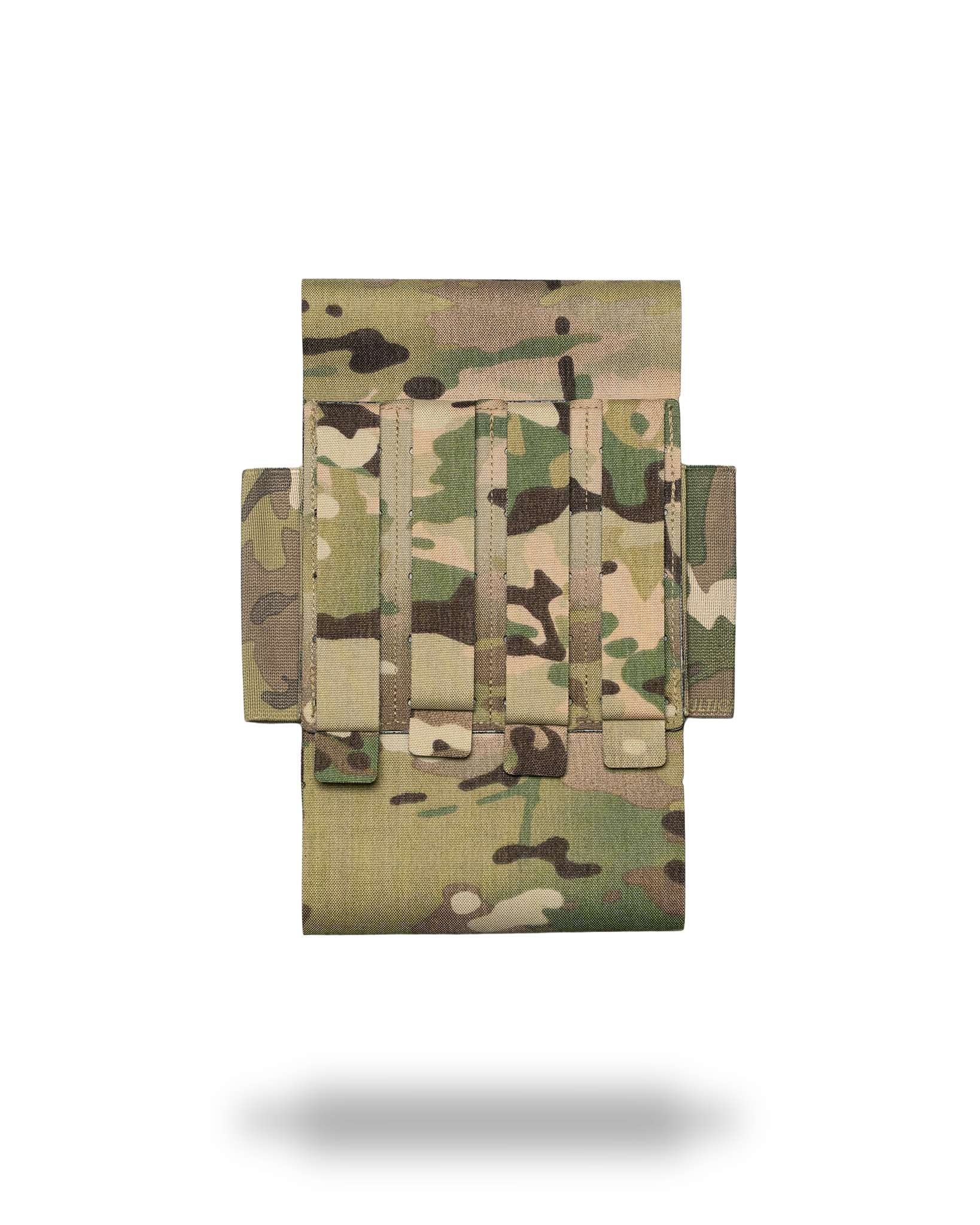 Minimal pouch for carrying 1 M249 SAW 200 round drum. Flap with 1”buckle closure with internal Velcro for flattening the pouch when empty. Made of B52/Squadron laminate. Reinforced MOLLE back with internal thermoplastic (Curv).