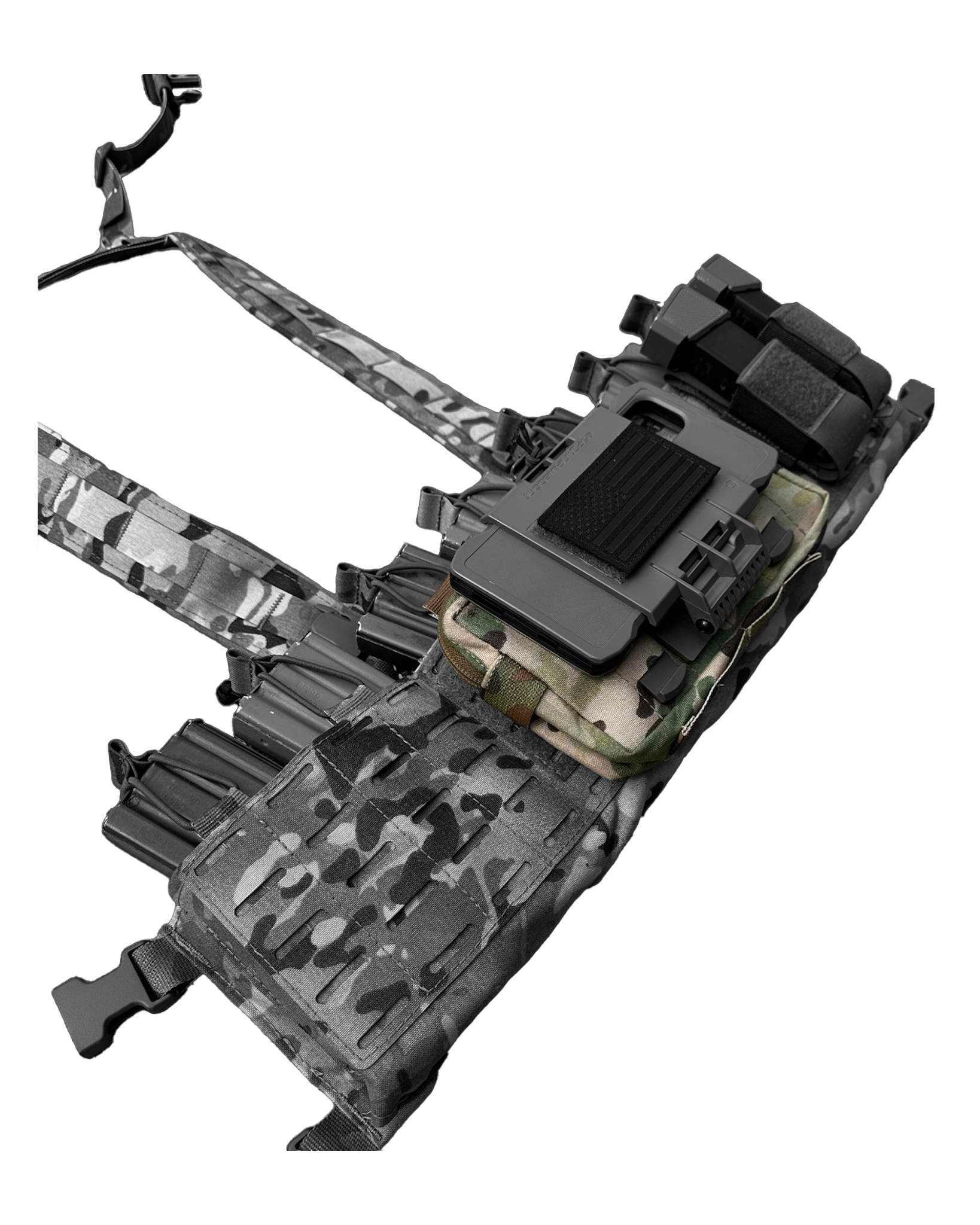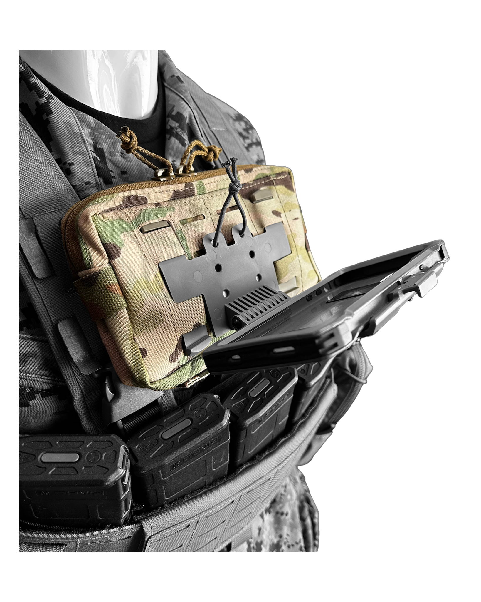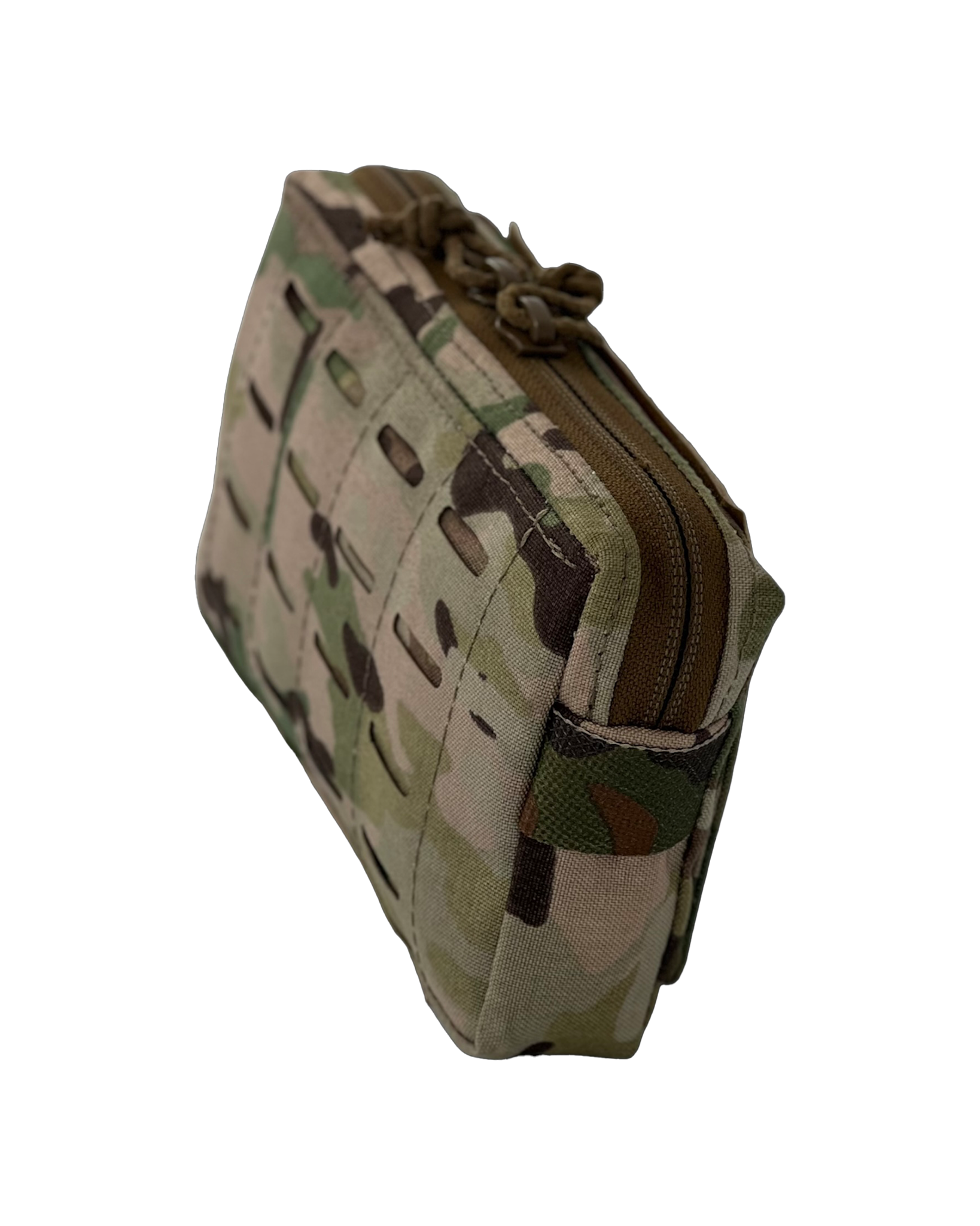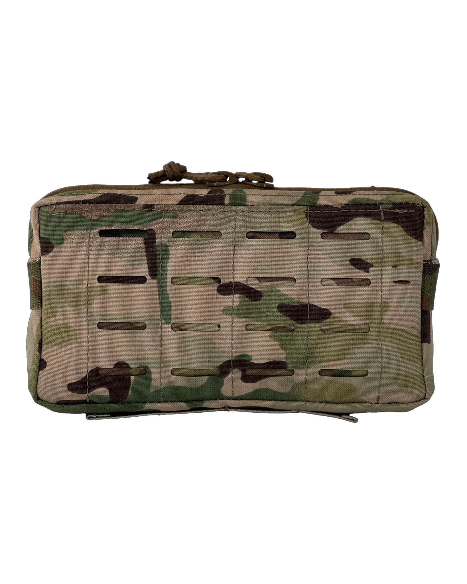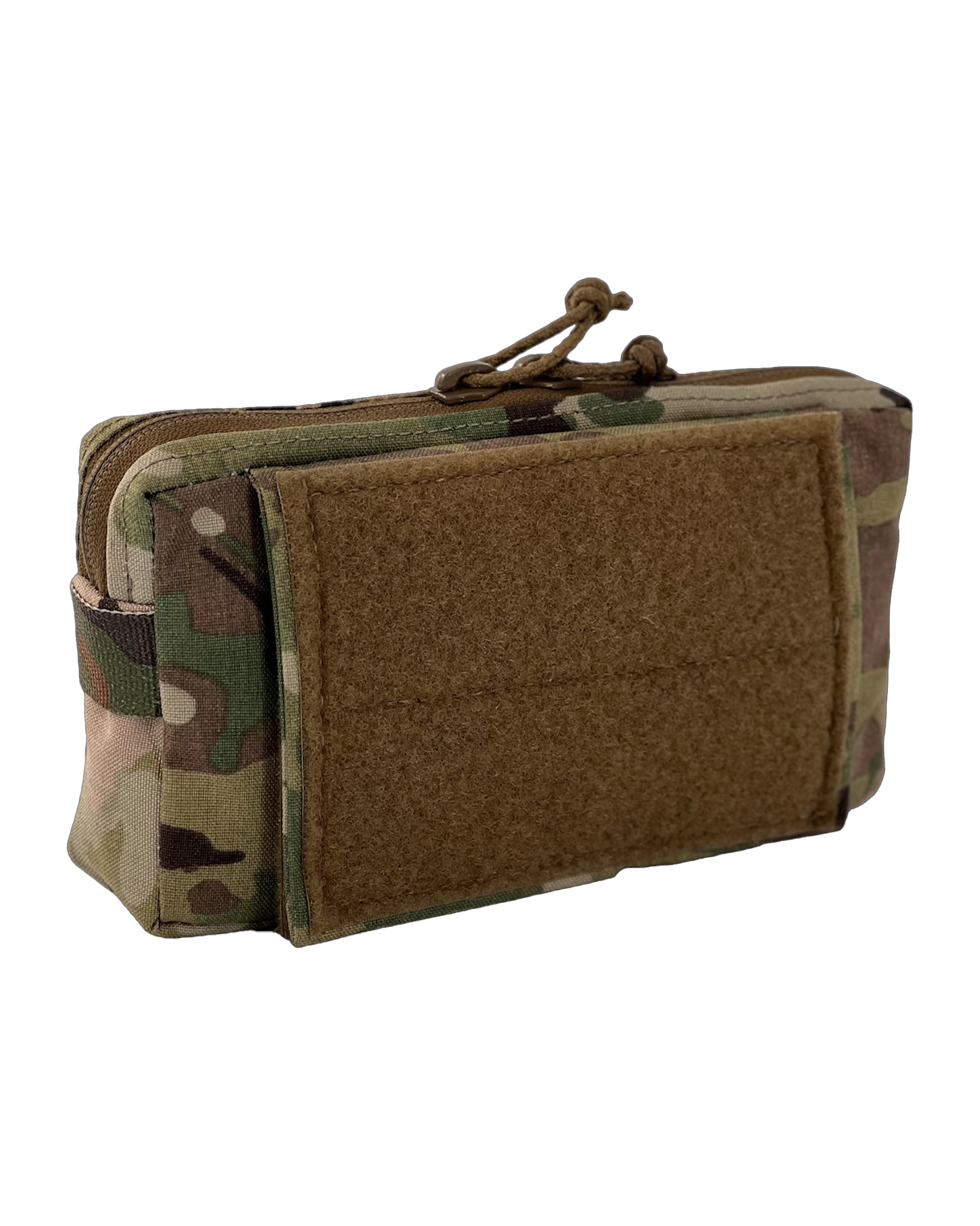 Like the DUFF, only smaller. Front zipper pouch has been removed and replaced with a Squadron MOLLE front for attaching small pouches or mounting an ATAK mount. DUFF is a Multi-Functional pouch. It’s a dangler sack, it’s a utility pouch, it’s a Fanny pack, it’s a rig Flap. Velcro loop inside allows for velcro inserts and other accessories to be anchored in. Row of 1” MOLLE webbing on bottom. Posi-lock cord zipper pulls. Rear flap was reduced in size to 6” to allow mounting to the Tactical Display Mount as an admin pouch.