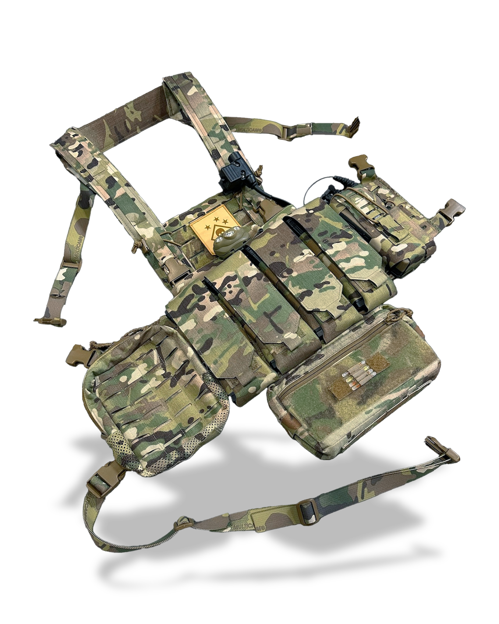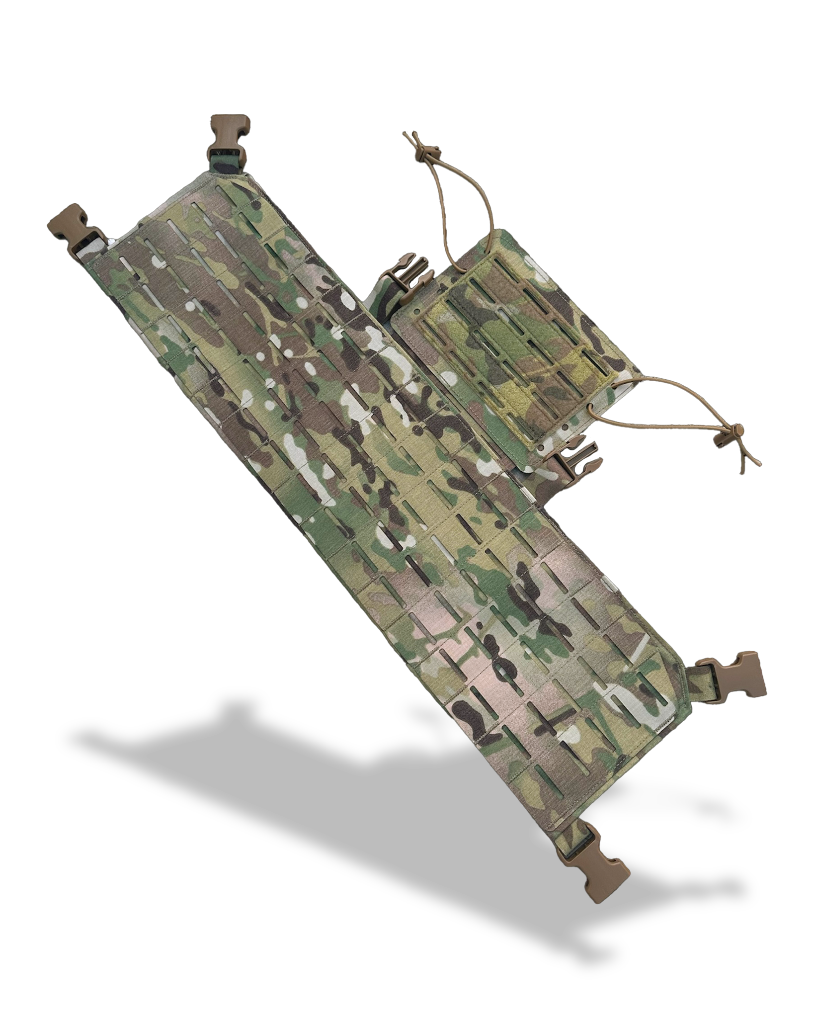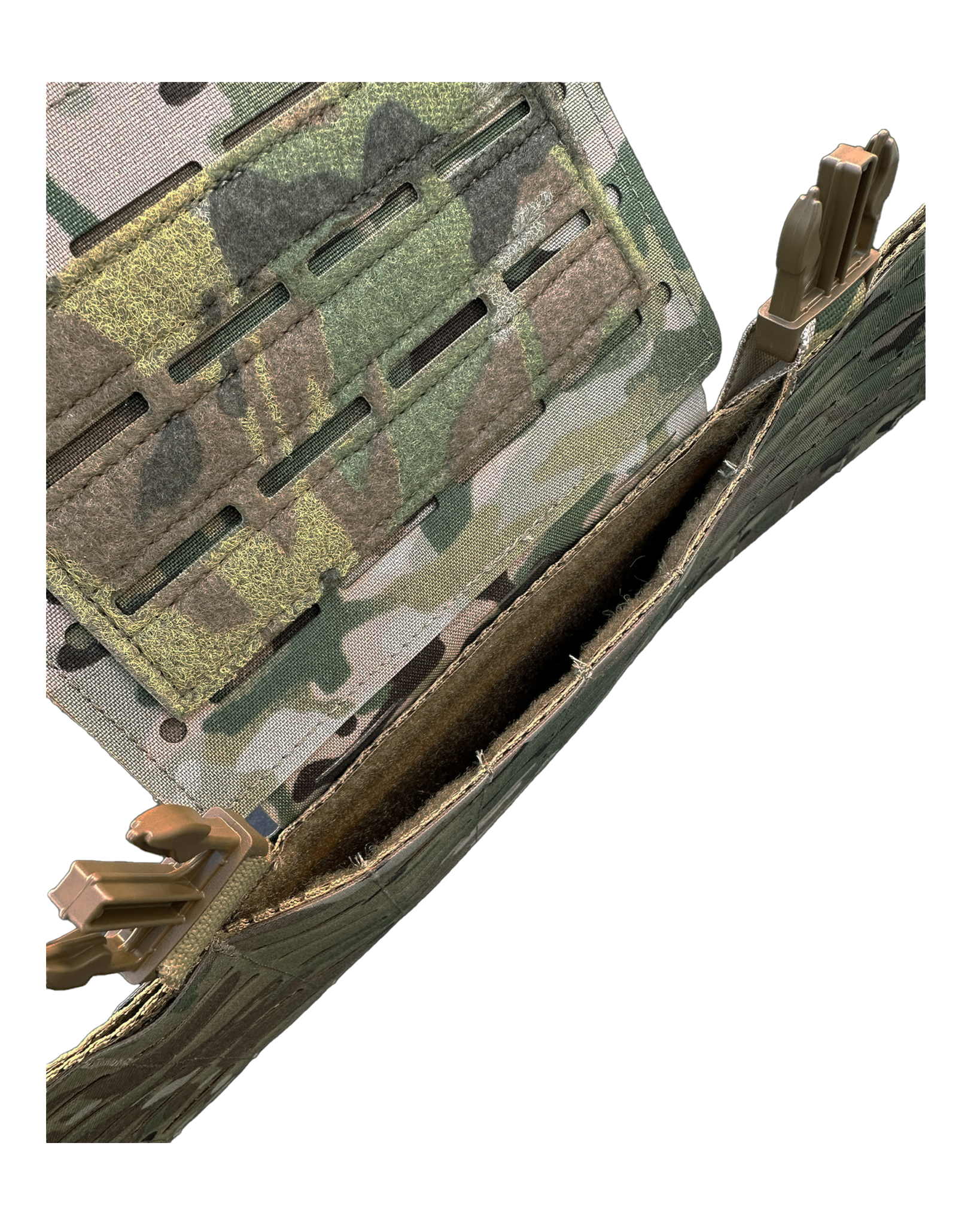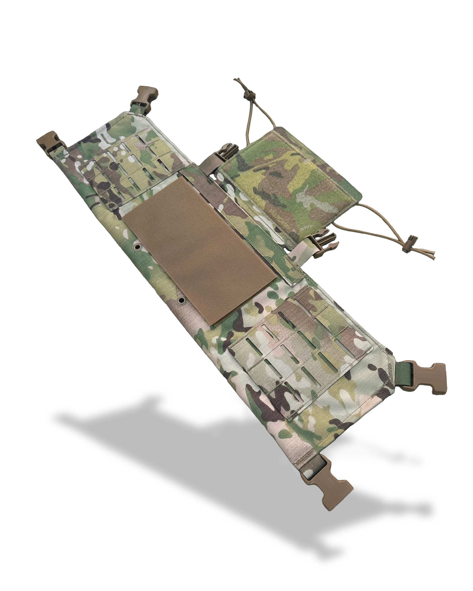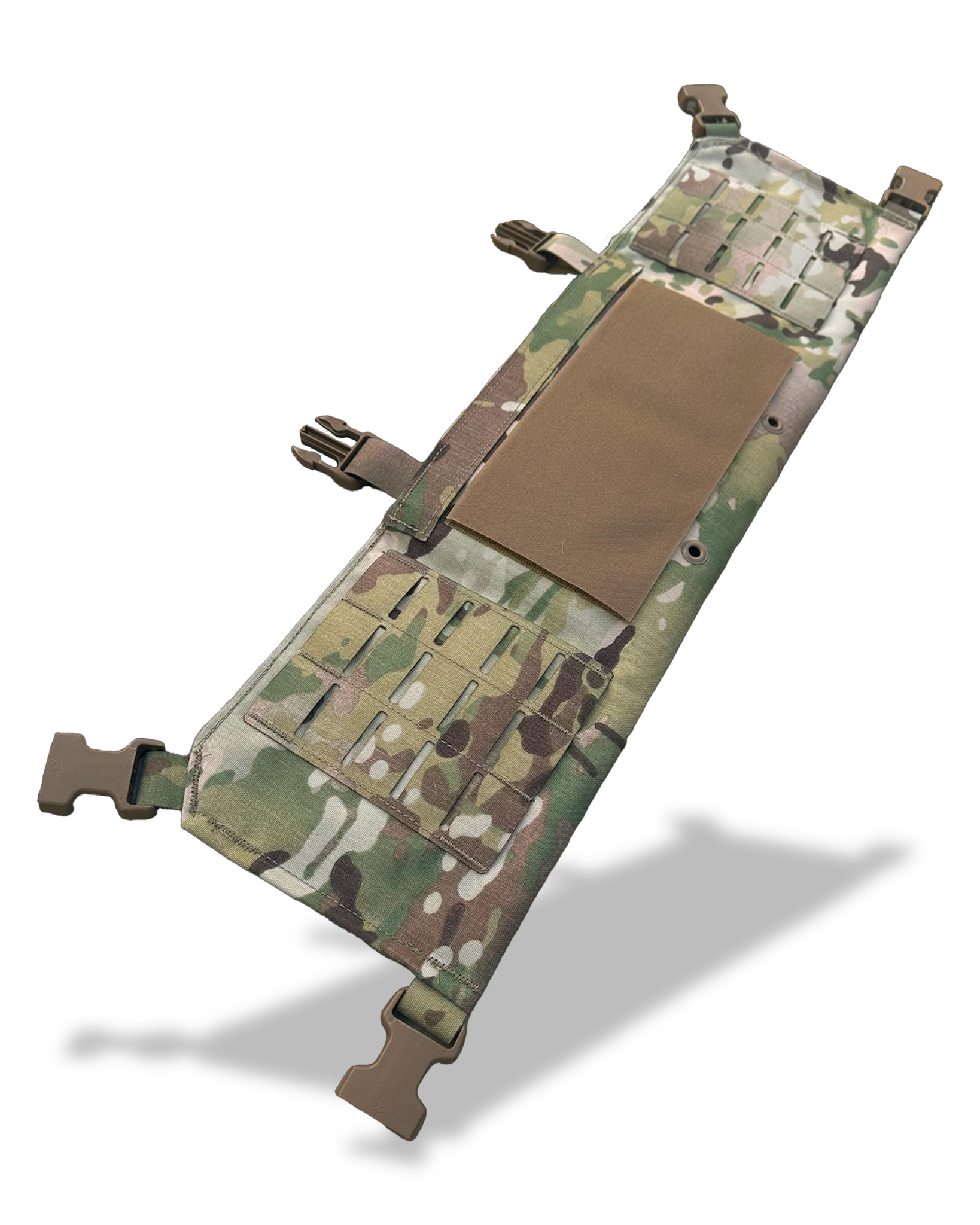 Tuck-able bib for attaching ATAK Nav-boards and Tactical Display Mounts. Velcro field for attaching ID patches. The main compartment will accept a triple magazine or zipper insert. Hookfield on rear will attach to our Rig Plate Bags and accept danglers. MOLLE panels on rear for attaching accessory pouches if desired. Available in laser cut Squadron with 500D or Omega Mesh for added breathability/quick drying.