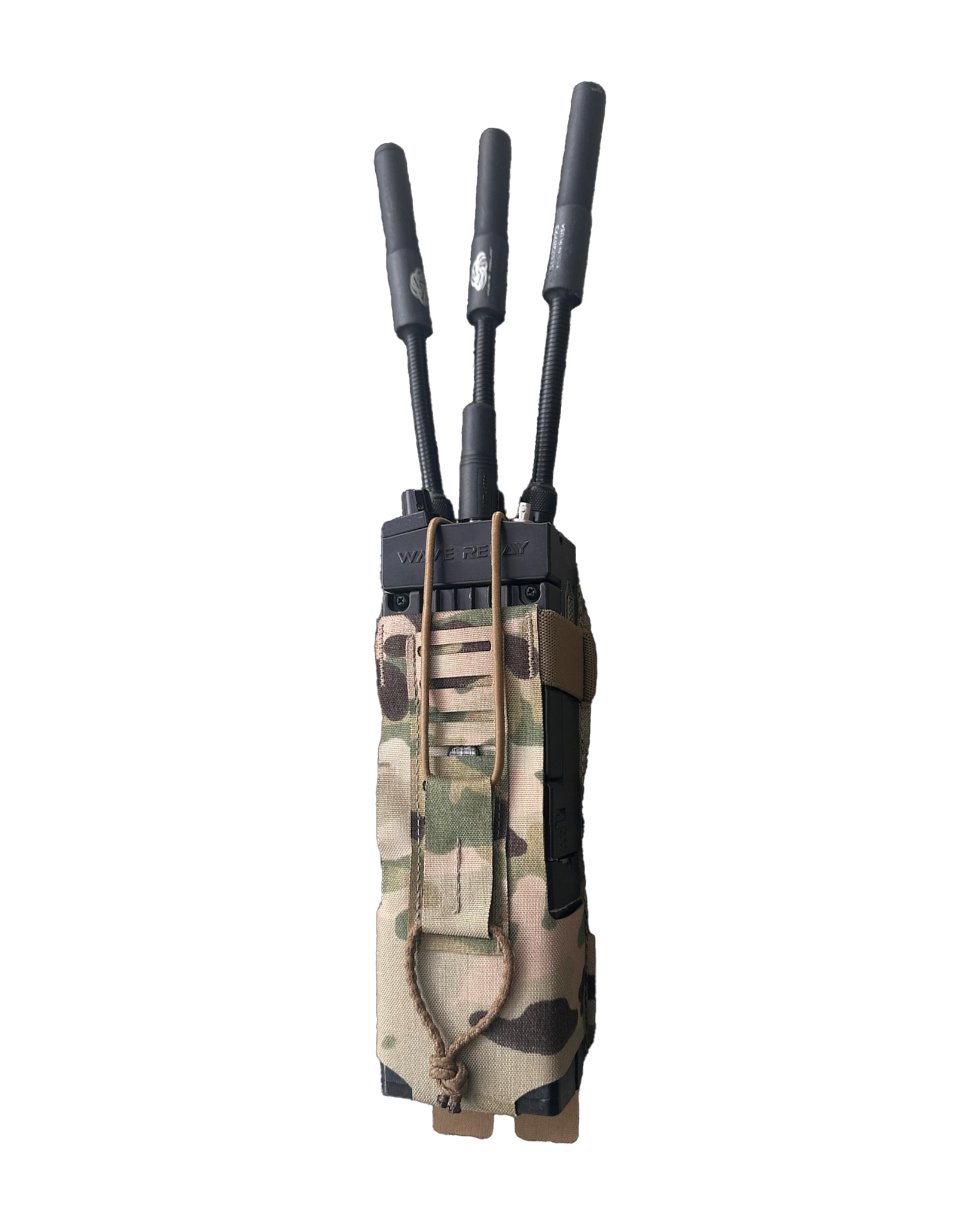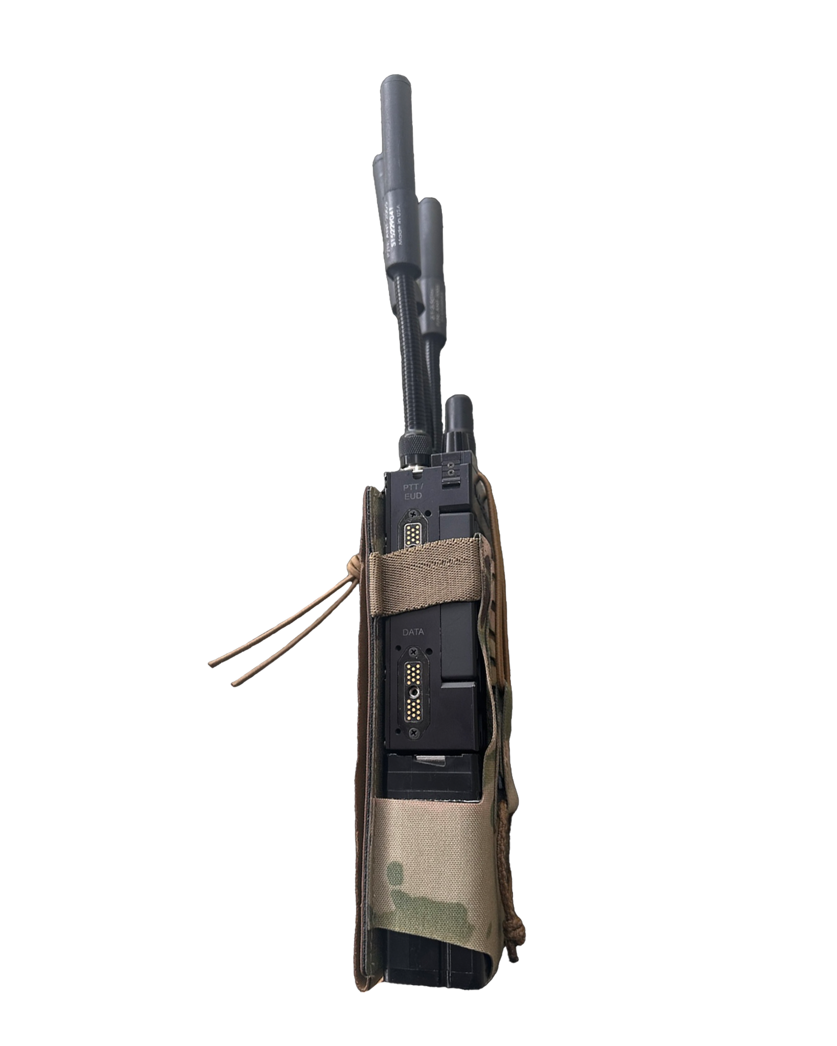 MOLLE radio pouch specifically designed for Military radios. PRC-148, 152, 163 and MPU5. Elastic top allows for adapters. Viper Retention Tab included.