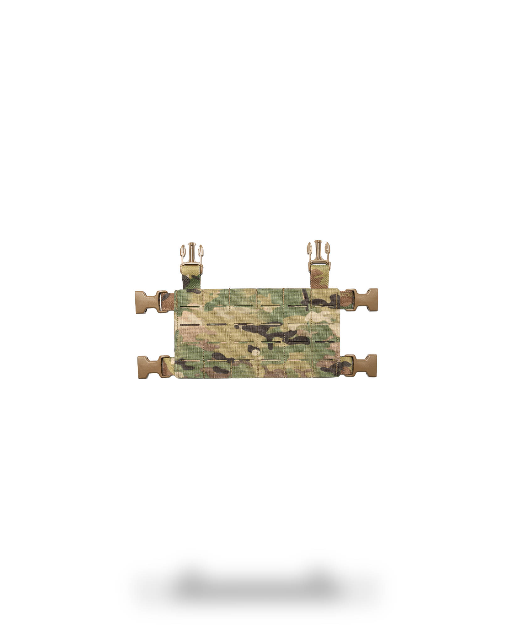 Chest Rig racks in 6, 8, 10, 12, and 14 MOLLE columns. Minimal. 2 layers of B52 laminate. Can attach pouches from both sides on the wings. Hook-backed for attaching danglers and sticking to plate carriers.