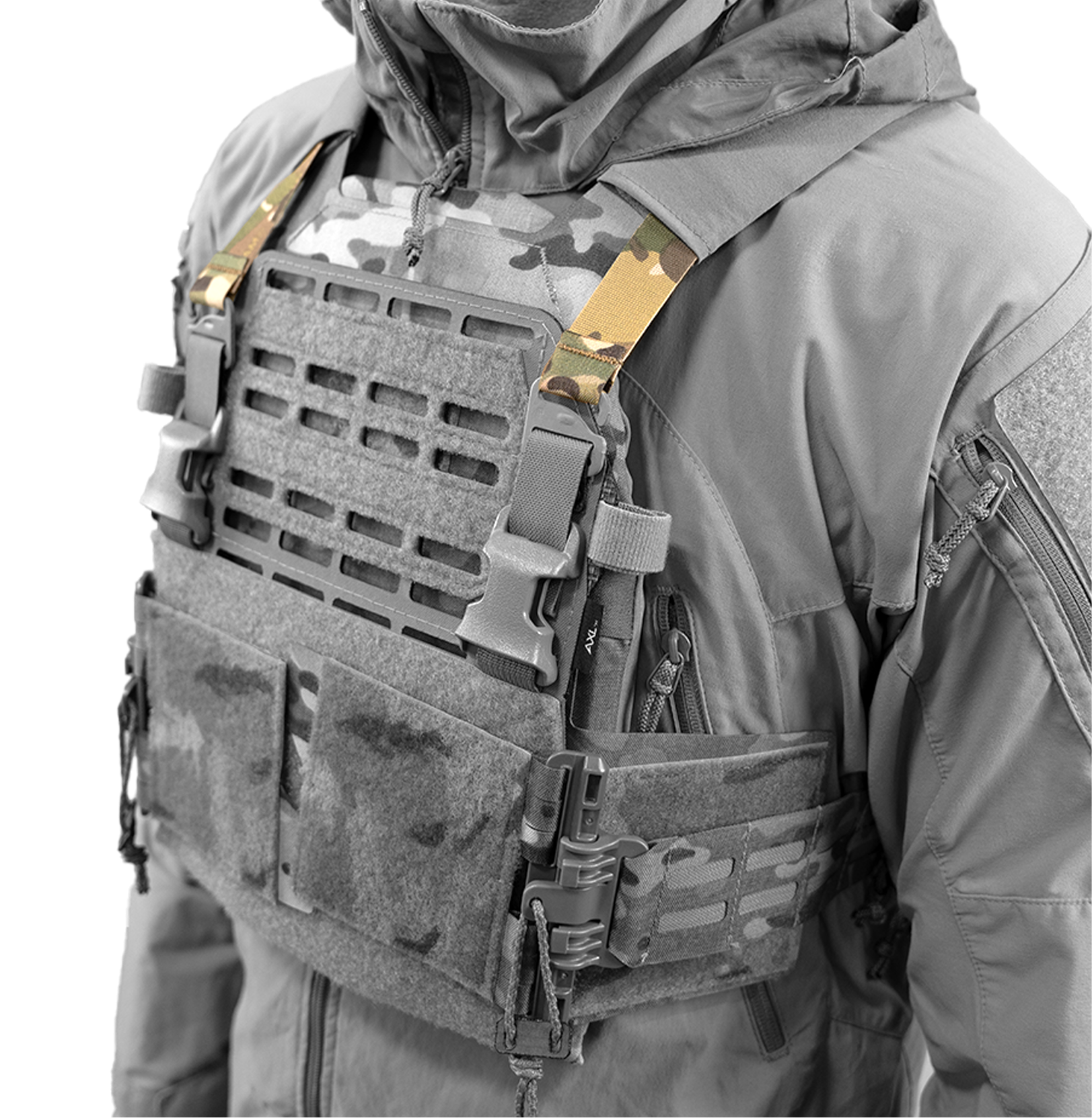 Allows users to mount the AXL AVP for the LV-MBAV to any carrier that has Velcro on the front for attaching placards and Velcro overlapping adjustable shoulder straps. Compatible with our TAC, TOW, and E-MBAV carriers.