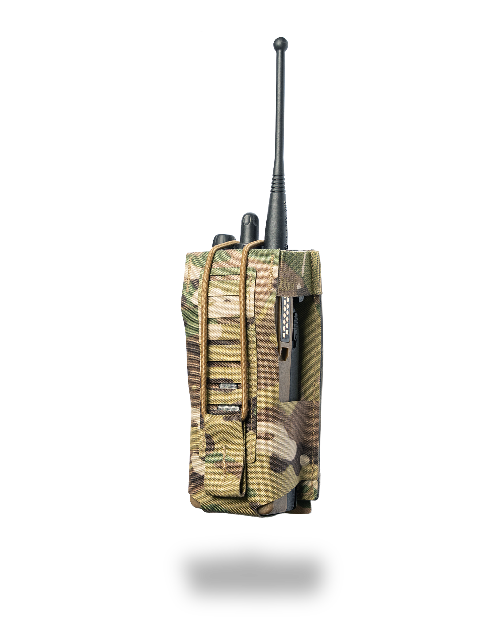 MOLLE radio pouch specifically designed for Motorola XTS 2500/5000 and APX 6000/8000 series radios. Elastic top allows for PTT adapters. Viper Retention Tab included.